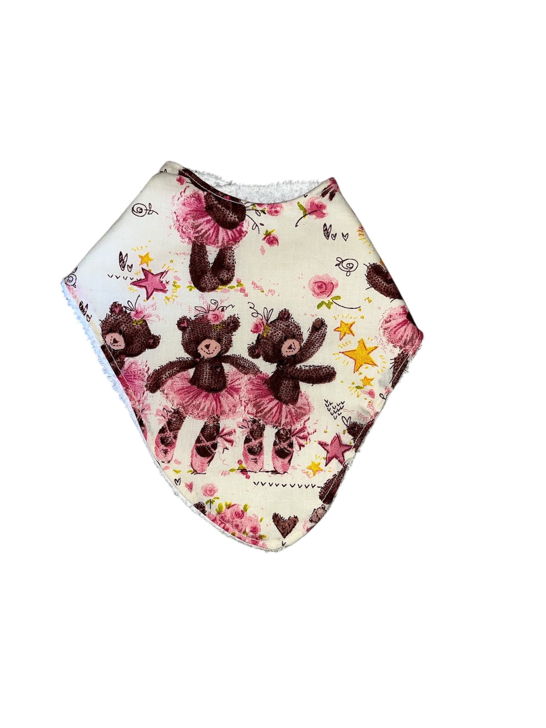 All in white and pink ballerina bear pattern, backed with white towelling.