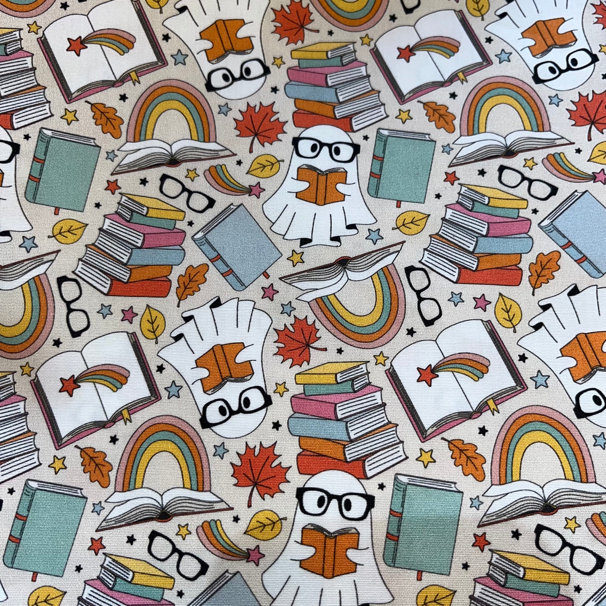 Super cute book reading ghostie in autumnal colours patterned scrunchy