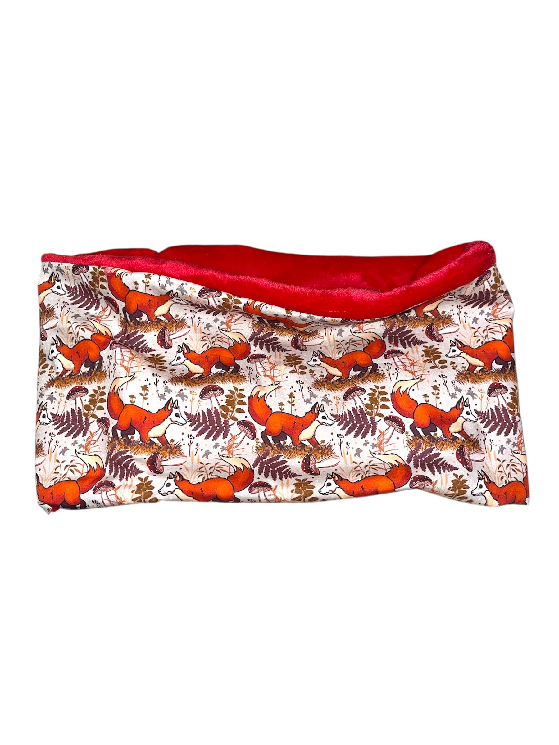 Autumn fox design snood/ cowl with red cuddle fleece.