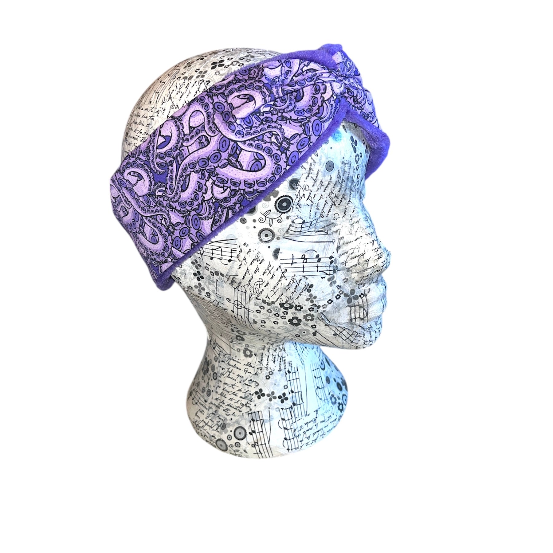 Purple tentacles design headwarmer/ear warmer with purple fleece