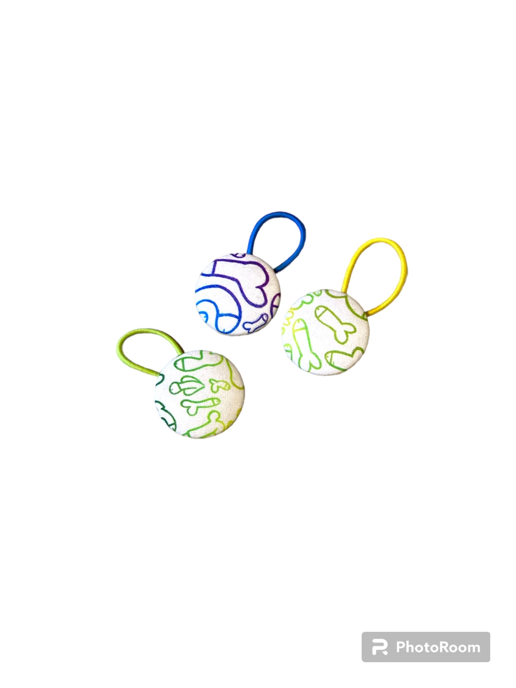 button bobbles are fabric covered metal buttons attached to hair elastic . Colours are random selection.