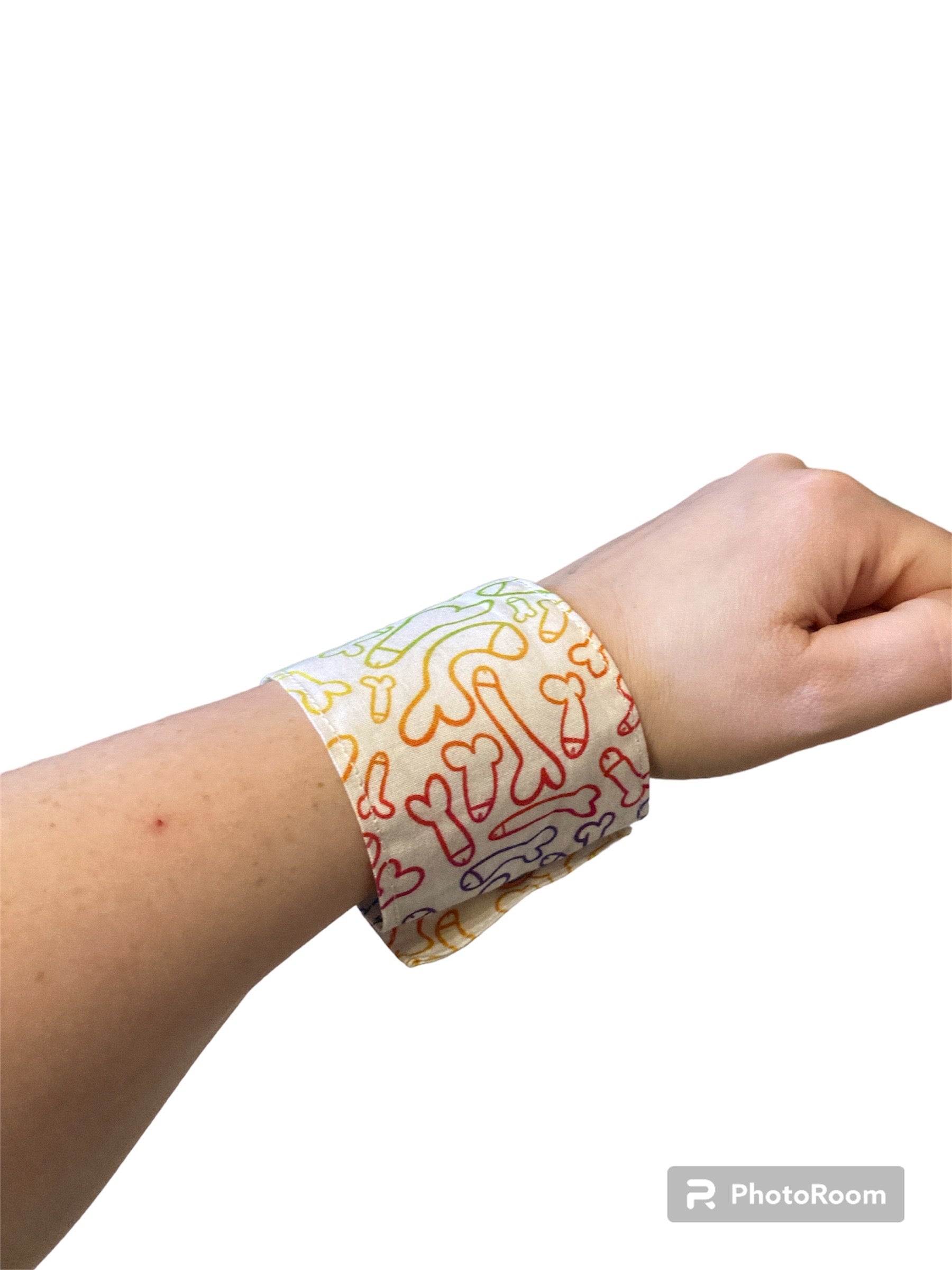 wrist cuffs fit most wrists upto 18cm circumference and fasten with plastic press studs (colours vary)
