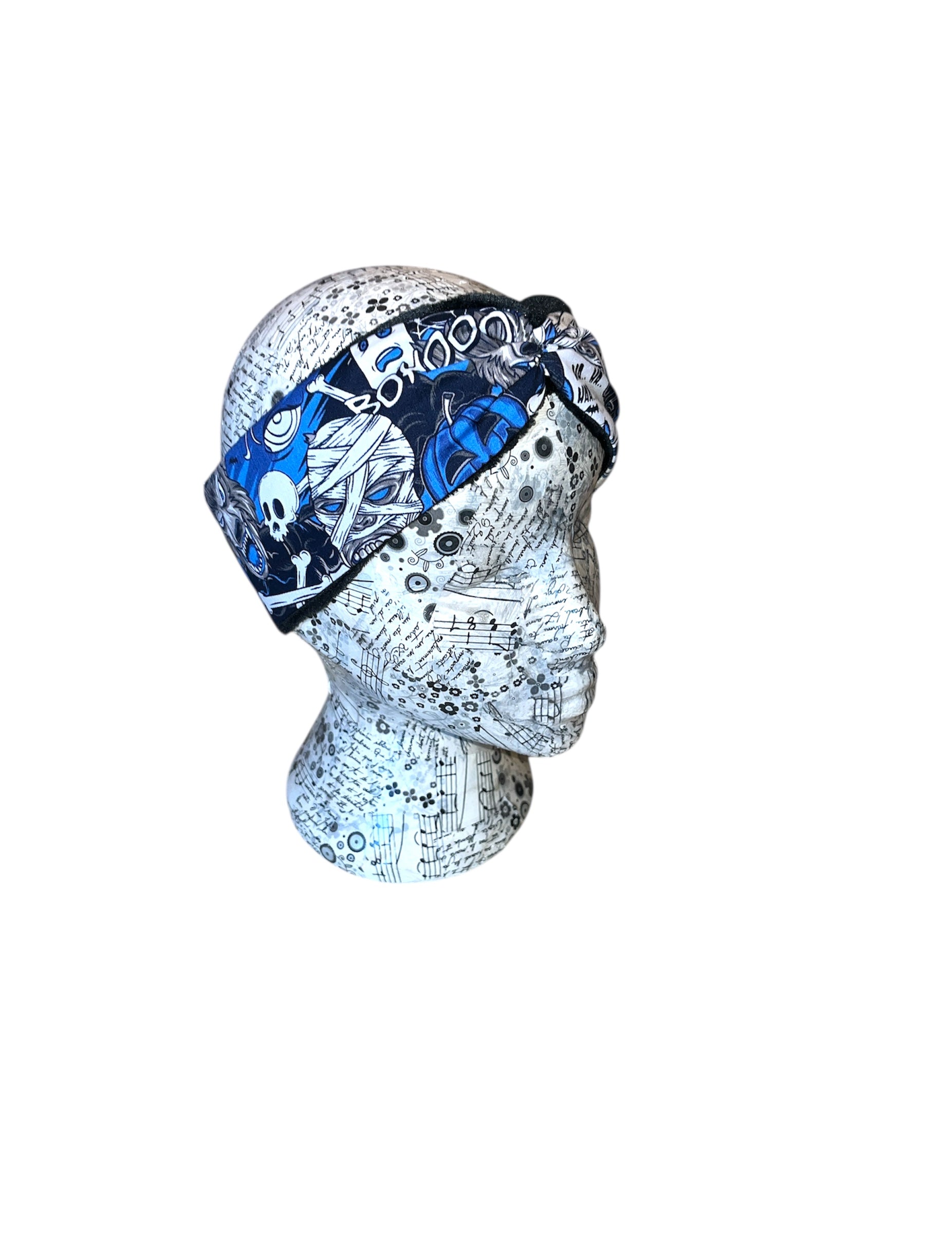 Black cuddle Fleece lined blue, black and white retro monster headwarmer/ear warmer