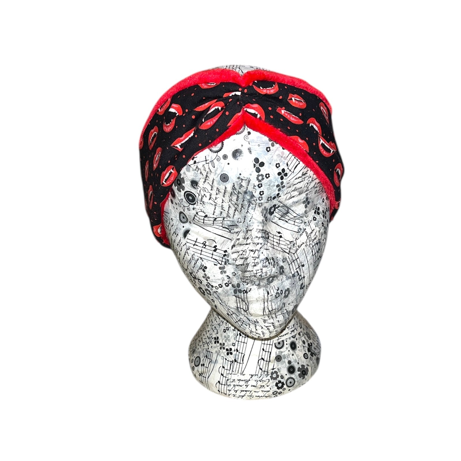 Red cuddle Fleece lined vampire fang themed headwarmer/ear warmer